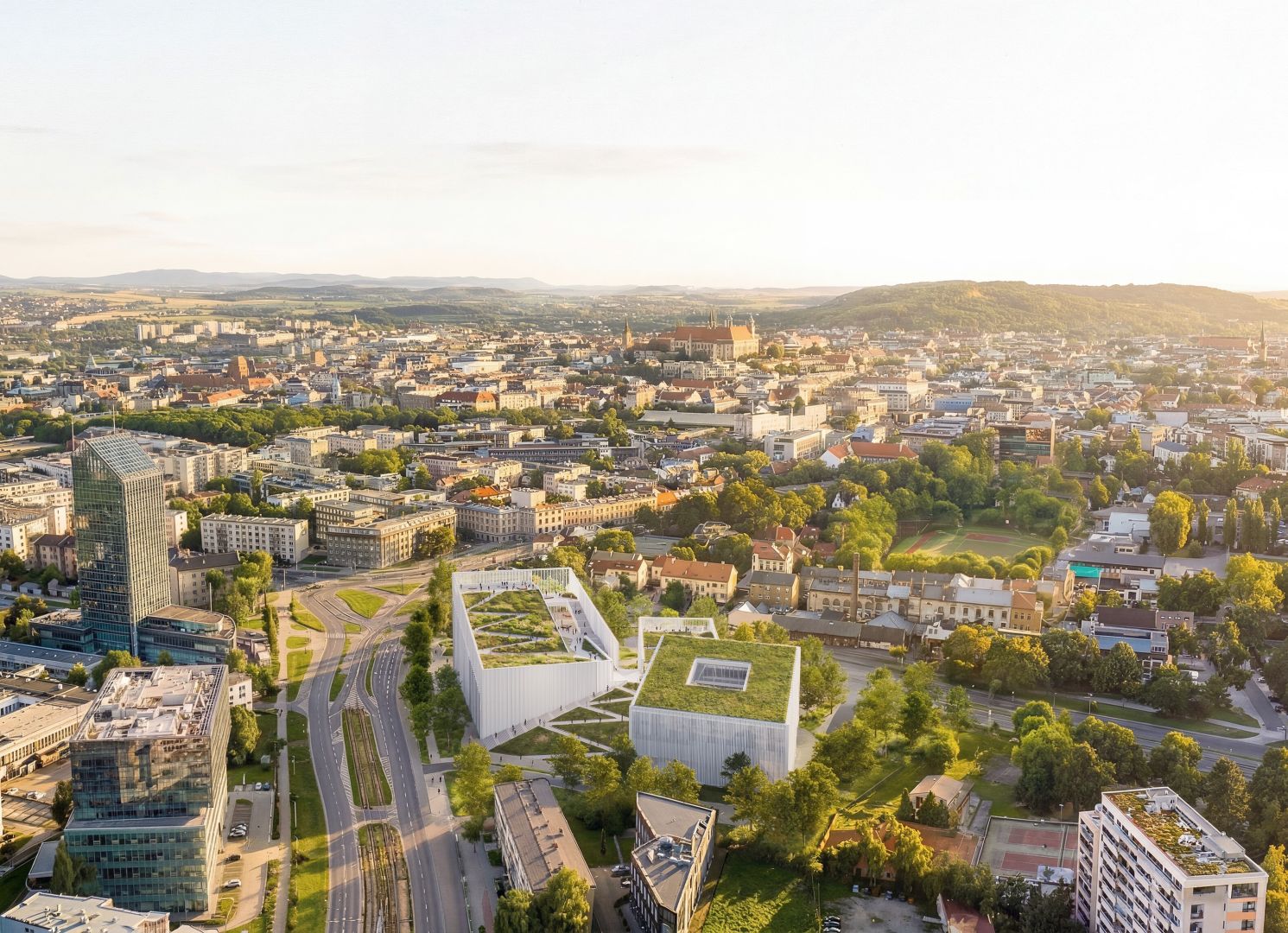 The new philharmonic building is born from the idea of two great spectacles observing one another: the city and music. The functional layout of the building is based on three distinct volumes, each corresponding to a different rhythm of use. All the volumes have their taller façades facing the city, creating viewing platforms with vantage points. The whole has been unified into a single form by a mound and becomes a new feature of the landscape.